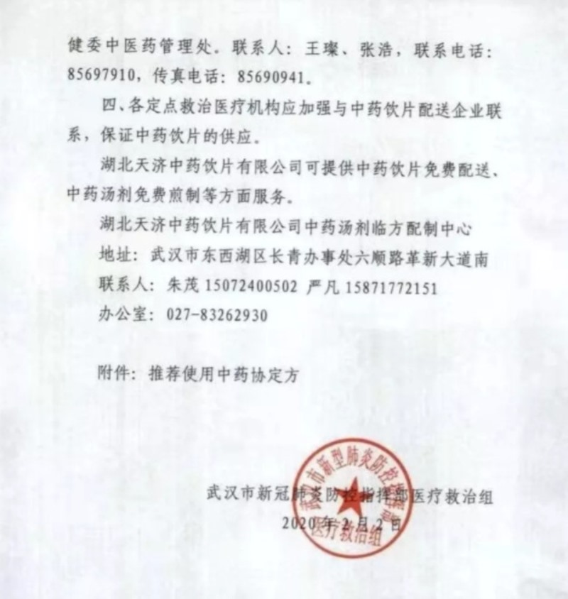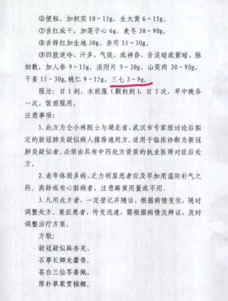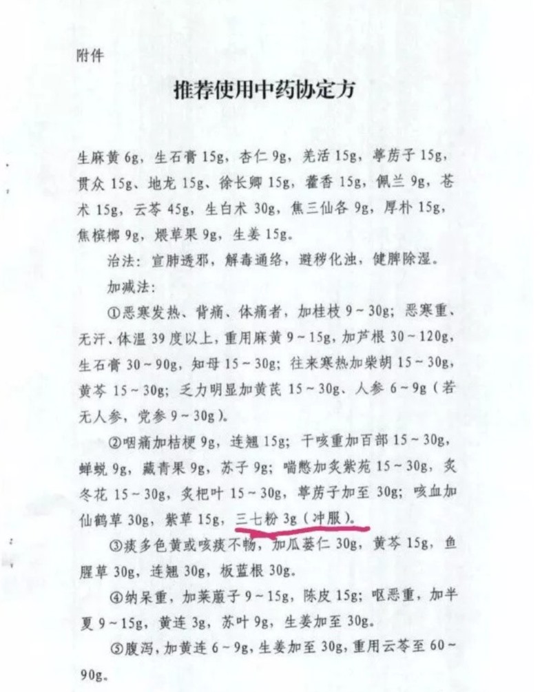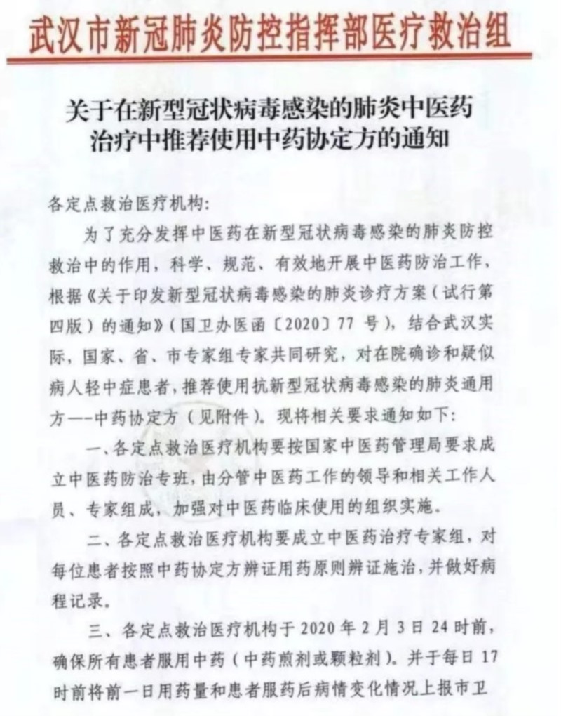 三七被武汉市新冠肺炎防控指挥部医疗救治组