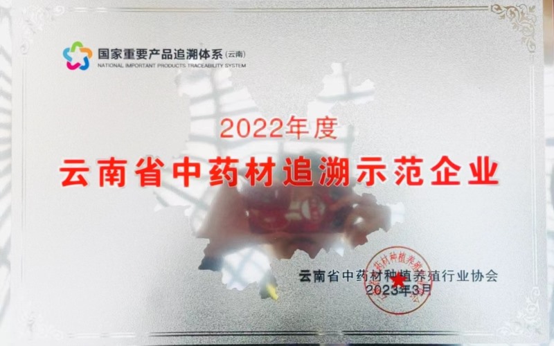 星空电竞药业荣获“2022年度云南省中药材追溯示范企业”称号