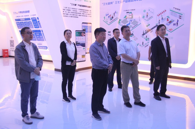 星空电竞药业公司副总裁李建明博士陪同调研组一行参观了星空电竞三七历史文化展馆、质检中心、三七科技种植示范基地及产品展示中心,并就星空电竞公司在三七种植技术、林下三七种植情况及解决三七轮作障碍方面取得的成效等情况向调研组一行进行了汇报。