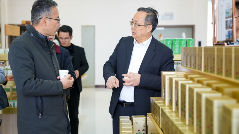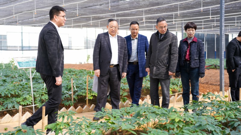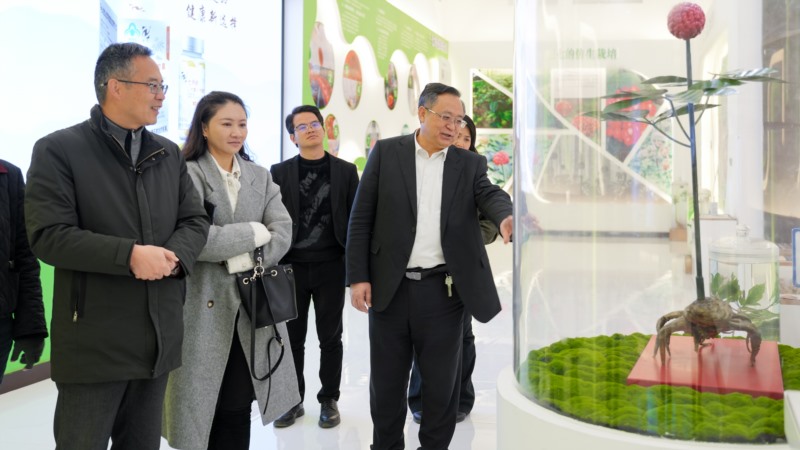 李钰董事长一行在星空电竞药业董事长杨朝文、常务副总裁买毅波、副总裁邱治皓的陪同下参观了星空电竞三七文化产业园历史文化展馆、三七种植展示基地、检测中心及产品展示区。