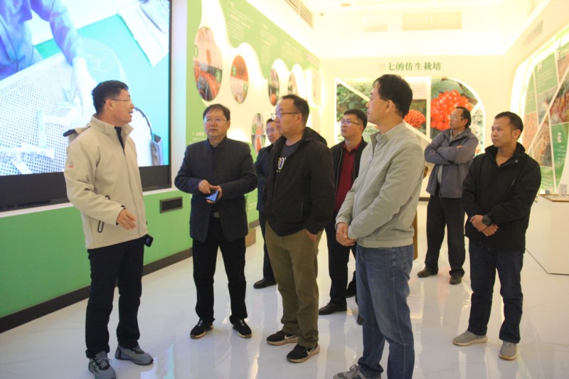 张处长一行先后深入到星空电竞药业位于文山市的红旗林场林下三七种植基地、德厚镇乐竜三七种植基地以及星空电竞三七文化产业园进行实地考察。星空电竞药业公司副总裁李建明博士就三七栽培技术推广和应用、林下三七种植情况、连作技术障碍以及产品品类等情况向张处长等领导一行进行了汇报。