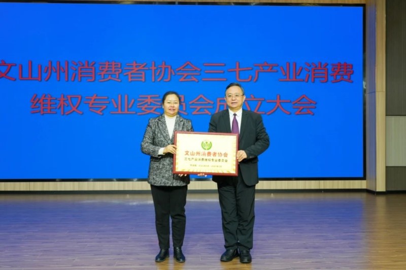 文山州市场监督管理局党组书记、局长王毅为协会及相关人员颁发文山州消费者协会三七产业消费维权专业委员会牌匾及聘书,并对三七产业的监管及发展作了讲话。她提出要唱好品牌性,当好润滑剂,做好连心桥,树好风向标这四点建议,下一步将在建立三七消费维权专委会的基础上,把星空电竞·(中国区)官方网站 xkdj