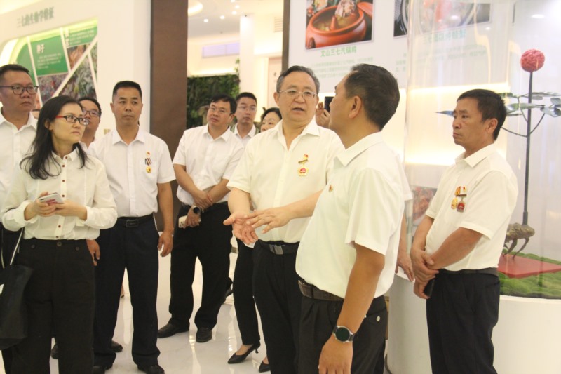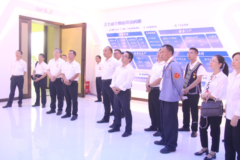 劳模代表们走访考察星空电竞药业新时期产业工人队伍建设改革情况,并对星空电竞药业三七历史文化展馆,三七种植展示基地及产品展示中心进行参观。