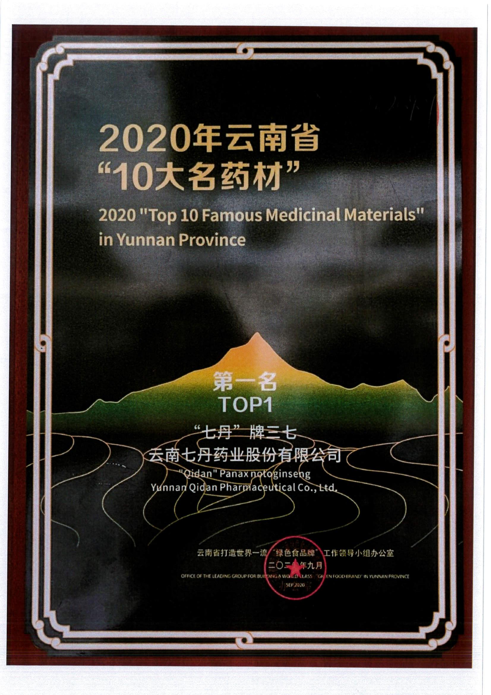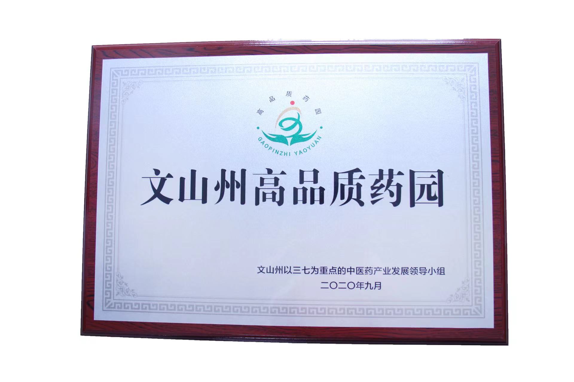 公司三七种植基地先后获得云南省绿色食品牌、云南省定制药园、文山州高品质药园等多项认定。公司6个基地共1451亩三七种植基地通过云南省第一批新版中药材GAP基地评价,也是全国第一批通过中药材GAP认证的基地;林下三七种植基地获得有机产品认证证书。通过多年的探索研究,公司掌握了三七种植核心技术,基本解决三七连作障碍问题,不仅保证了三七产品质量,也为三七产业的高质量发展提供了有力的技术支撑,以实际行动诠释了高品质三七典范的使命与担当。