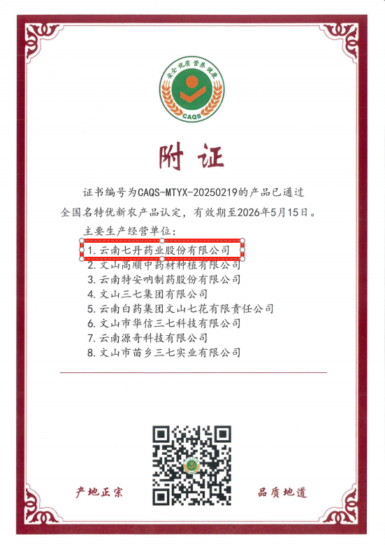 参与申报的“文山三七”成功通过全国名特优新农产品认定,作为文山唯一符合《全国名特优新农产品管理办法》要求的产品,此次认定进一步彰显了文山三七“产地正宗、品质道地”的特质。