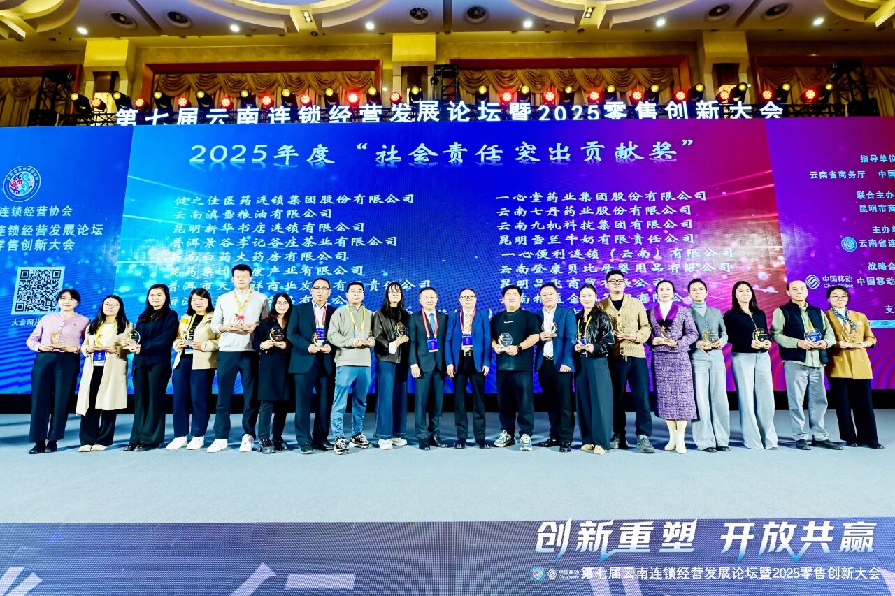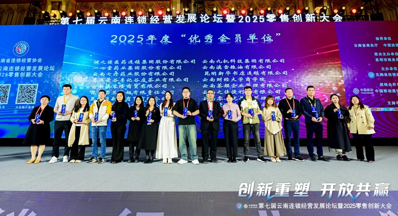 星空电竞药业公司作为协会副会长单位参加了本次大会,并凭借在践行社会责任与产业协同发展中的突出表现,荣获2025年度云南省连锁经营协会“社会责任突出贡献奖”、“优秀会员单位”荣誉称号。
