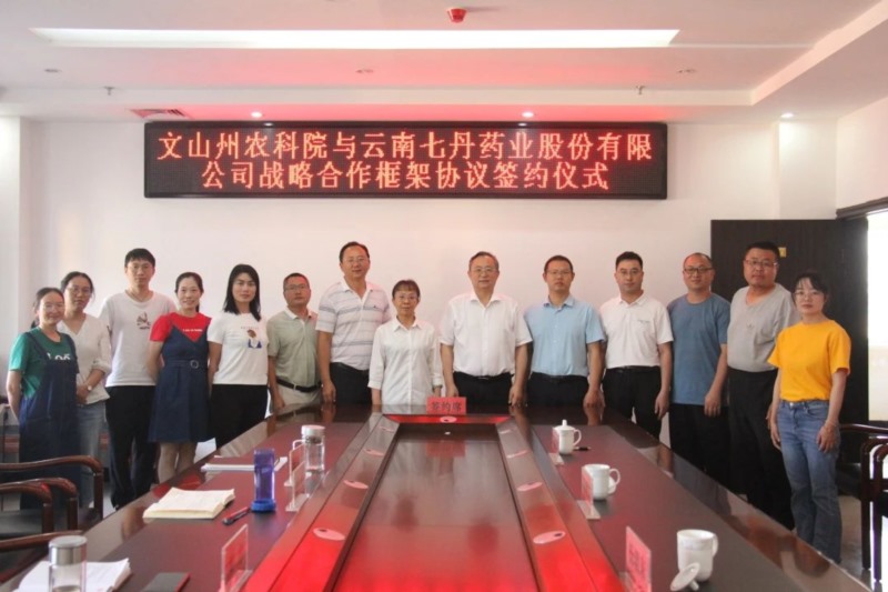 与文山州农业科学院举行战略合作签约仪式,星空电竞药业董事长杨朝文和州农科院院长李云分别代表双方共同签暑了合作协议。