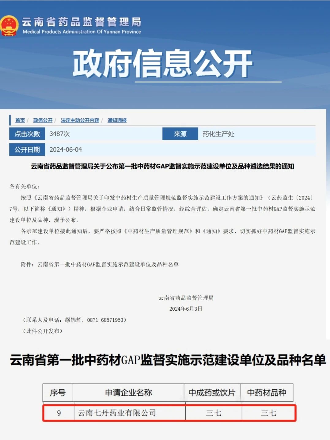 近日,云南省药品监督管理局公布了第一批中药材GAP监督实施示范建设单位及品种遴选结果的通知,根据企业申请,结合日常监管情况,经综合评估,星空电竞·(中国区)官方网站 xkdj 及公司三七成...
